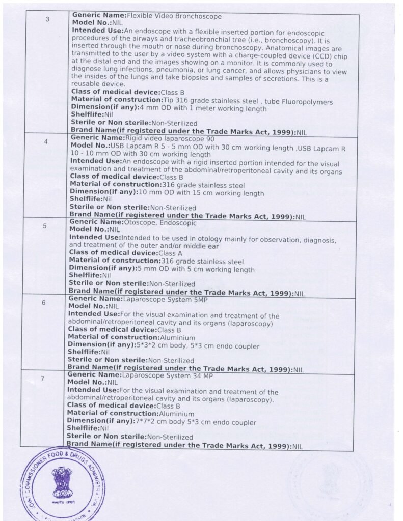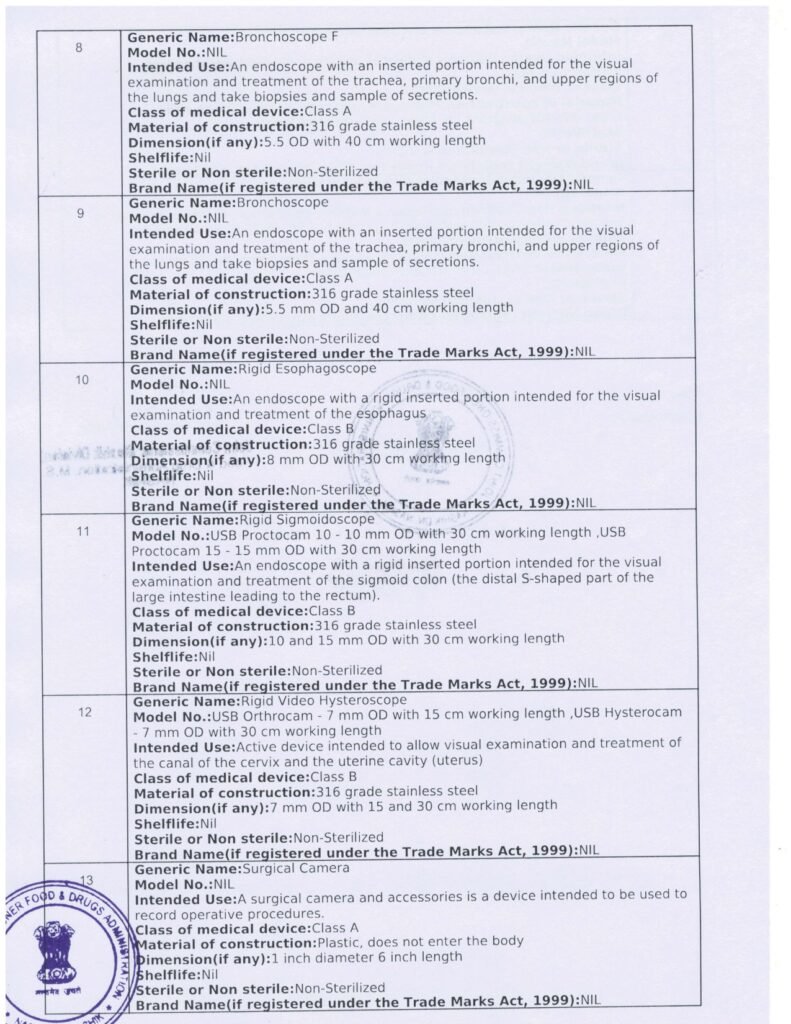 Rigid video laparoscopes, Flexible video laparoscopes, Rigid video bronchoscope, Laparoscopic endocamera, Rigid video proctosigmoidoscope, Rigid video esophagoscope